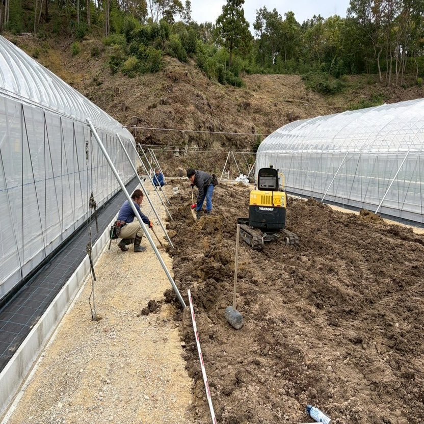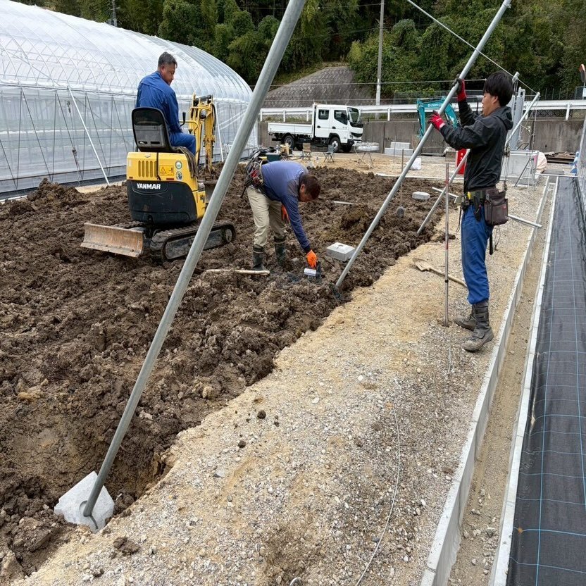 いちごのビニールハウスの間にある空き地を活用し、キウイ棚を新設 しました。